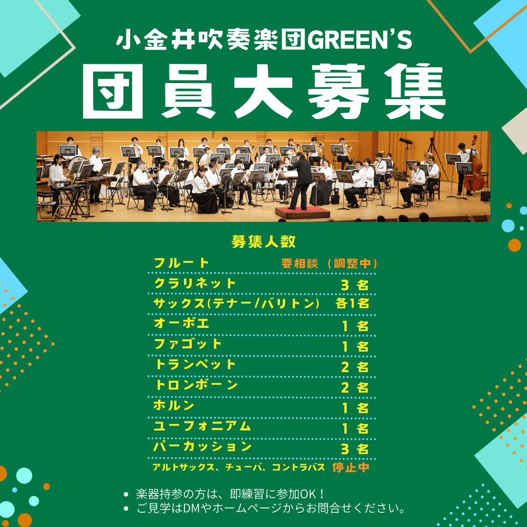 <募集人数> ・クラリネット/3名 ・テナーサックス/1名 ・バリトンサックス/1名 ・オーボエ/1名 ・ファゴット/1名 ・トランペット/2名 ・トロンボーン/2名 ・ホルン/1名 ...